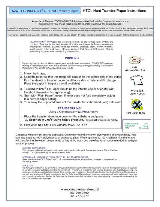 TechniPrint EZP Laser Printer Neenah Heat Transfer Paper for Light Color Fabrics